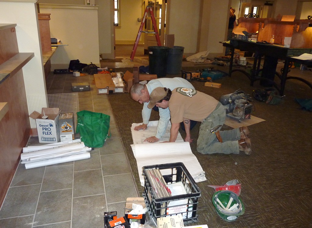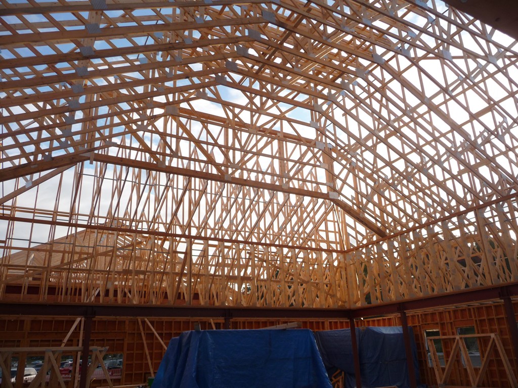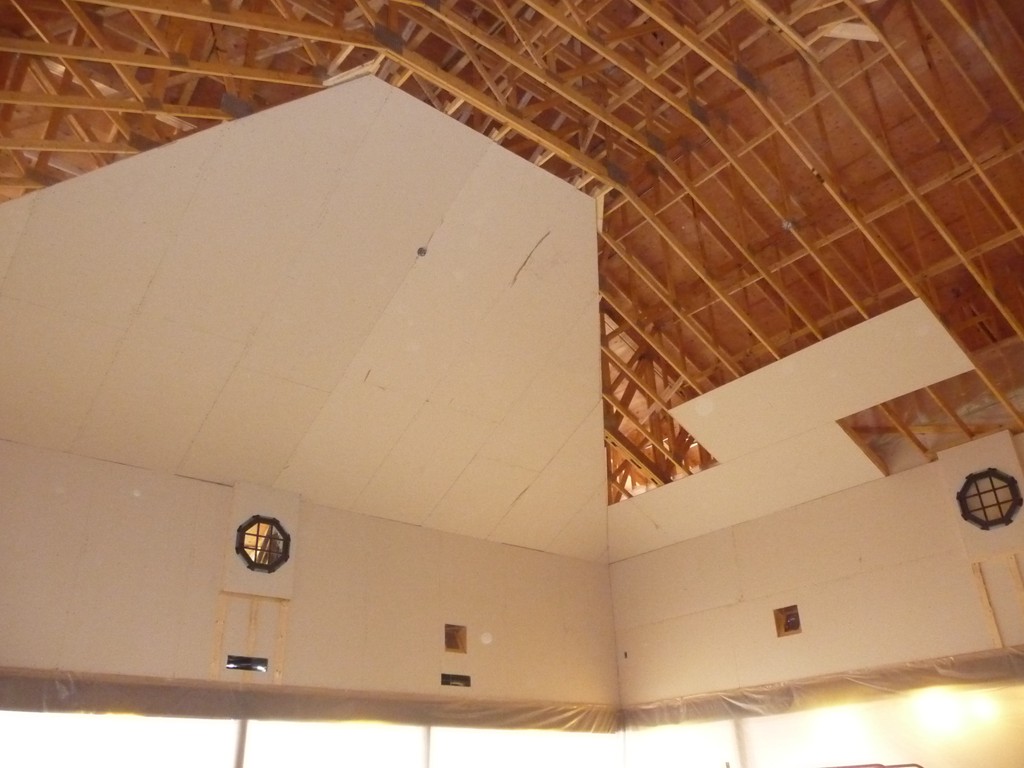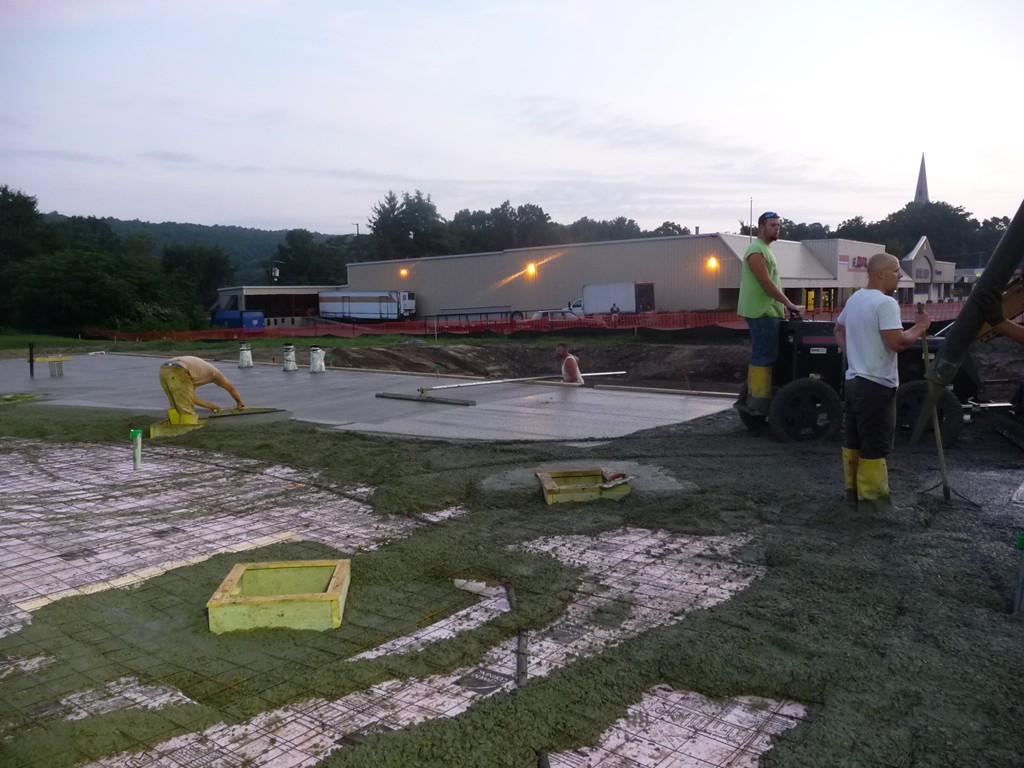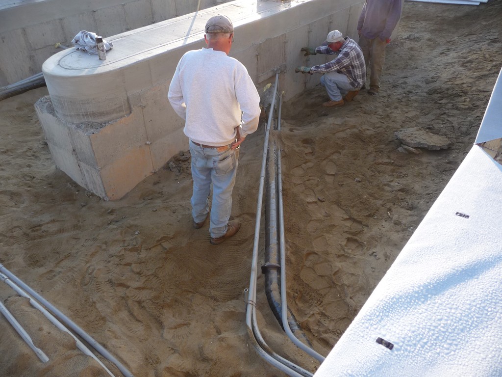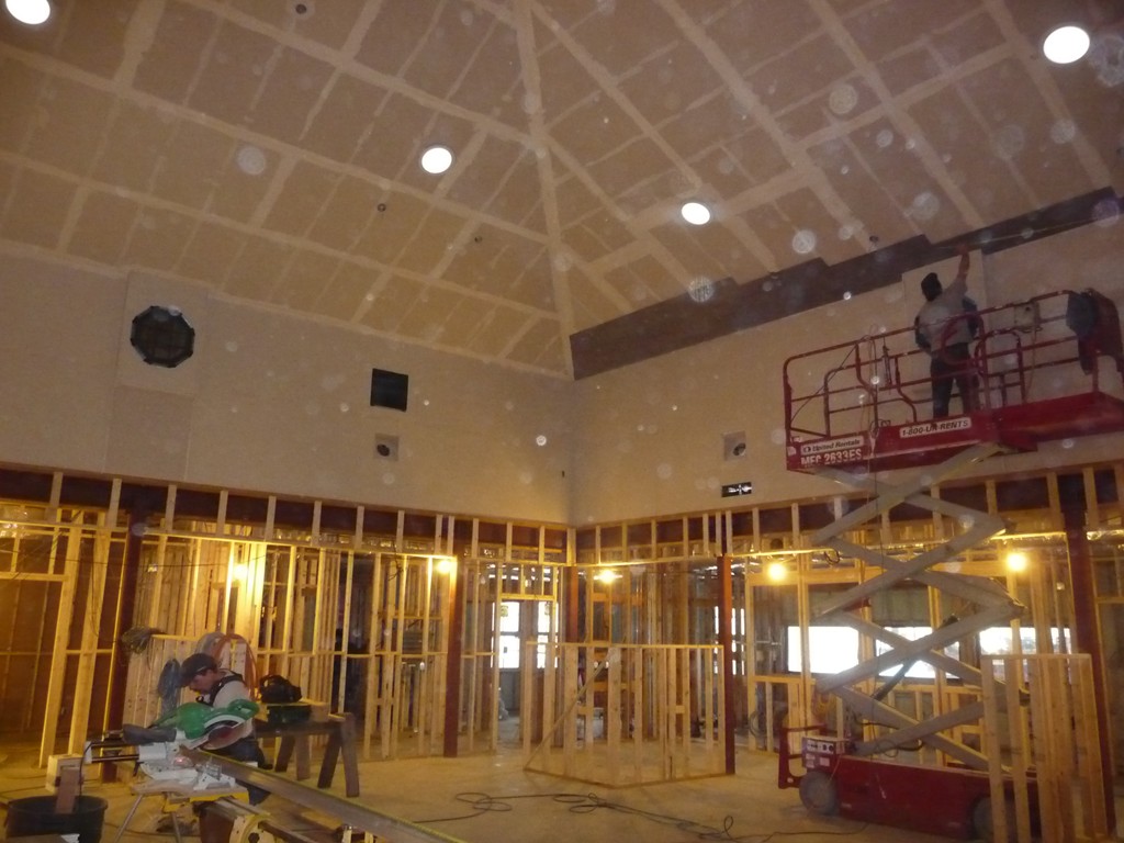 One of our goals when building this 7500 square foot branch for Greenfield Savings Bank, designed by architect Joseph Mattei, AIA, was to demonstrate that a large building can be built to the same energy saving standards as a small building. With a final Energy Star Leakage Area Calculation of 1.01 sq/in per 100 sq/ft (14,400 sq/in) of shell area, everybody was pleased with the results. Once we had the shell insulated, we heated the entire site during the interior finish in the winter with one wall hung Modine heater.