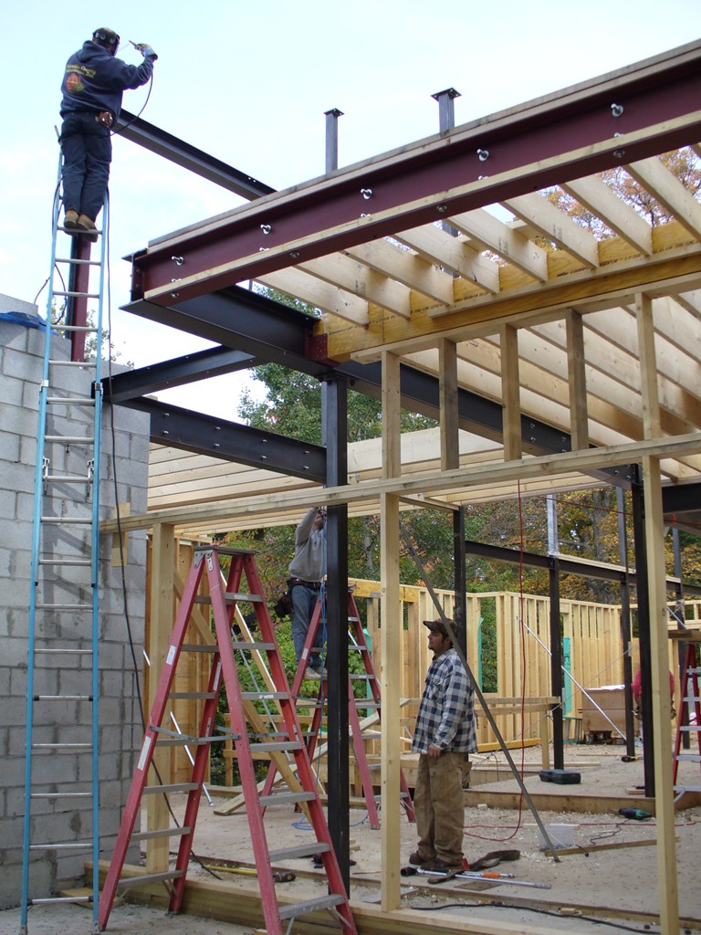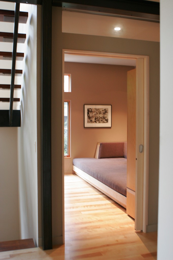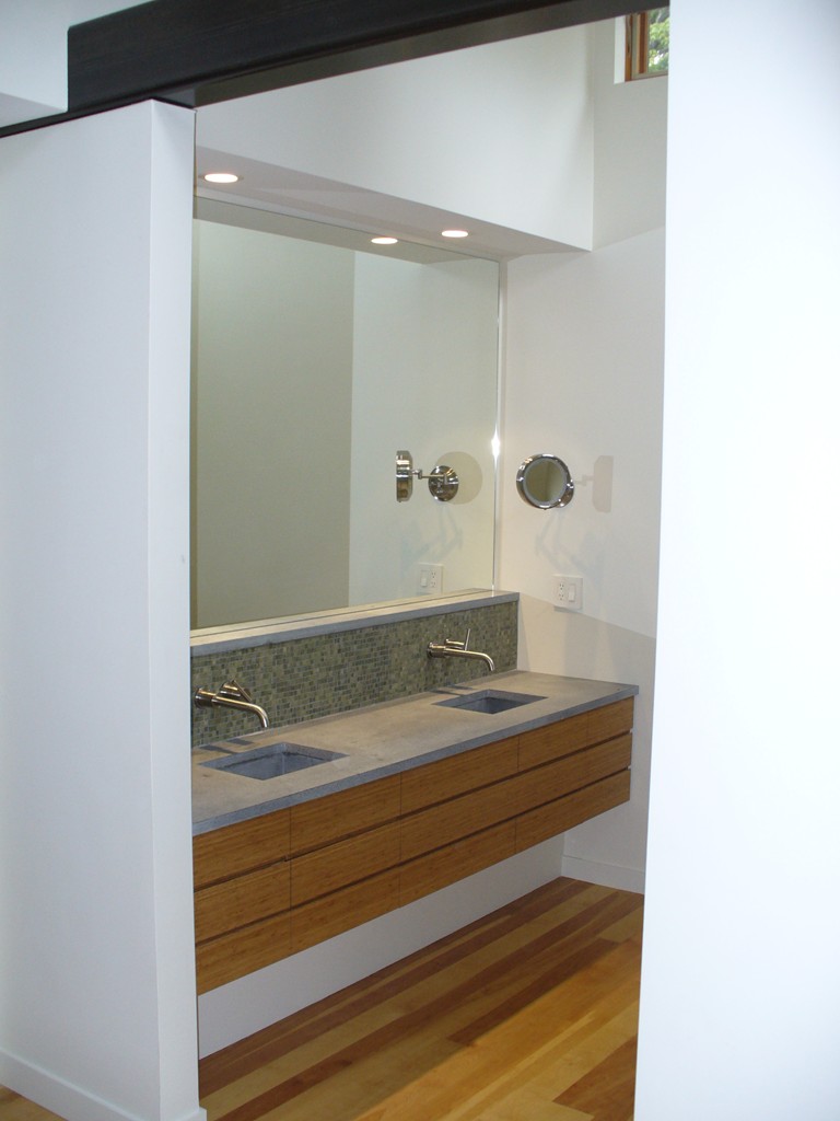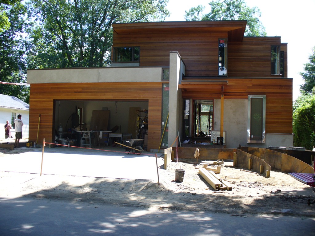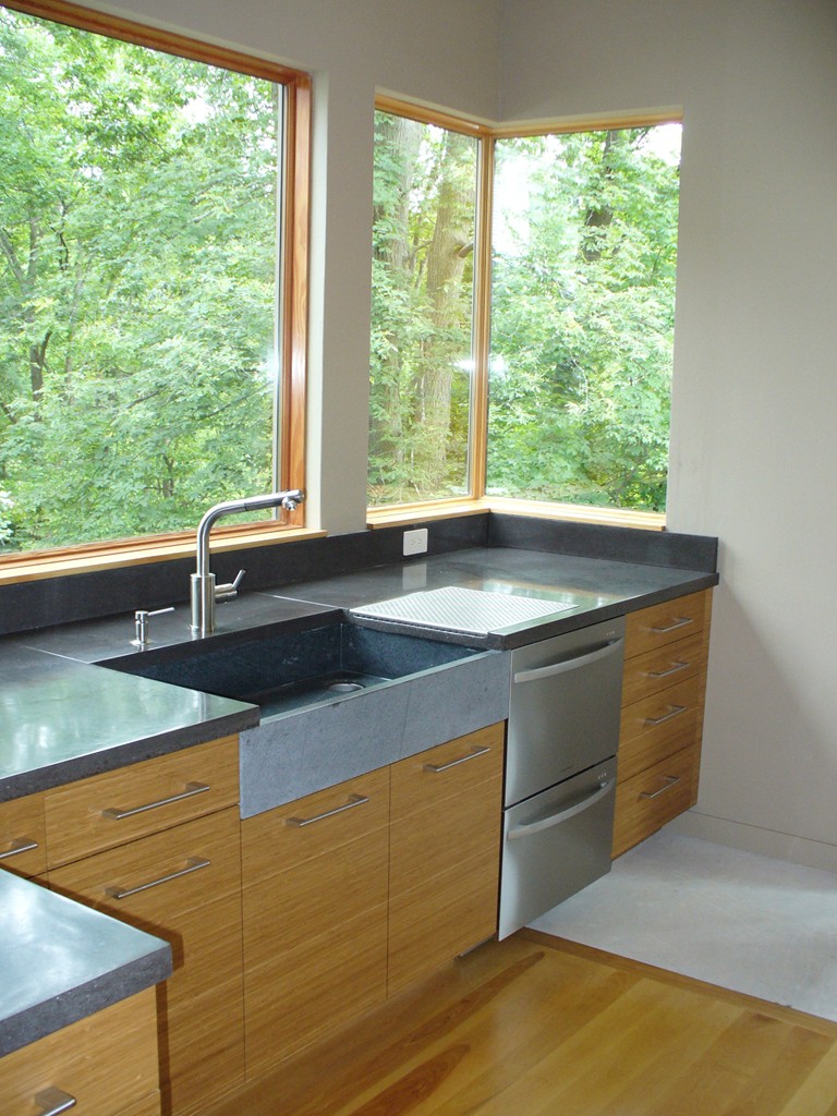 This custom contemporary home in Northampton is modern in appearance and modern in its low energy consumption as well. Designed by Michael Singer, some of the special features of this house are the exposed steel frame, lots of natural wood, and light coming from unexpected places. A geothermal heating system, energy efficient windows, and radiant heating all combine to make it as comfortable as it is beautiful.